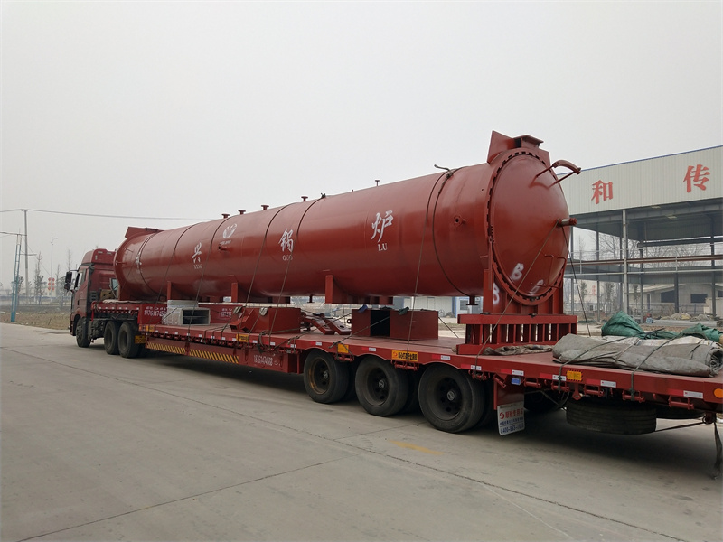 由于蒸压釜工作介质多采用饱和蒸汽,所以为了尽量减少釜体不均匀受热而产生的变形,对于较K的蒸压釜不宜采用集中进汽方式,而应该在釜内沿釜长度方向设置蒸汽分配管,蒸汽从进汽口进人后沿分配管分配到釜内各处,使整个釜体均匀受热。蒸压釜在升压时,釜体底部有冷凝水,底部温度比上部温度低。在不影响操作和小车行走等因素时,分配管尽量靠近釜体底部。