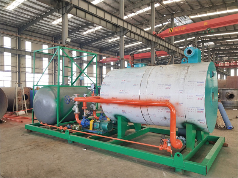 YY(Q)W卧式燃油/气导热油炉燃料在内盘管组成的燃烧室内燃烧放热,经辐射受热面吸收大部分热量后,高温烟气进入对流受热面并进行换热。高温烟气出锅炉后在空气预热器中加热锅炉燃烧所需的空气,经除尘器由引风机将烟气送至烟囱排入大气。